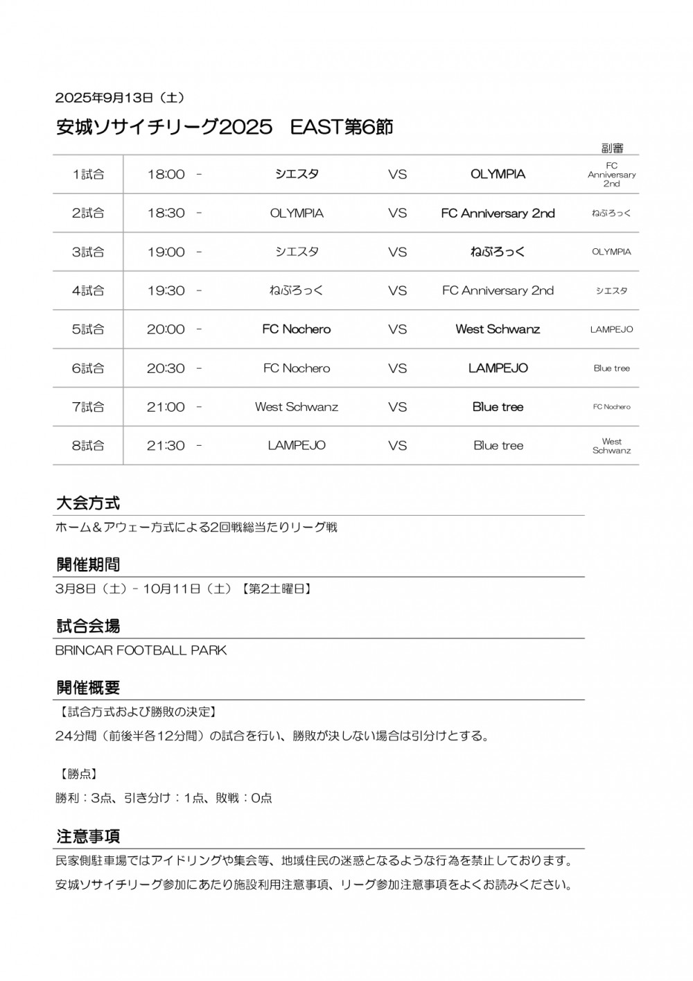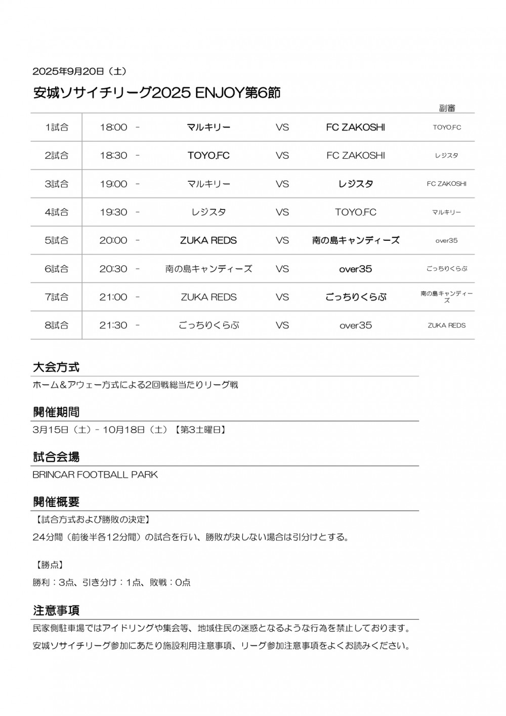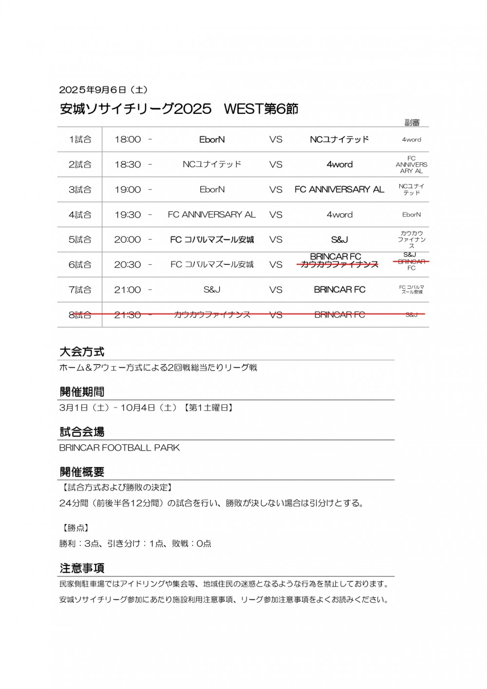 安城ソサイチリーグ第6節日程