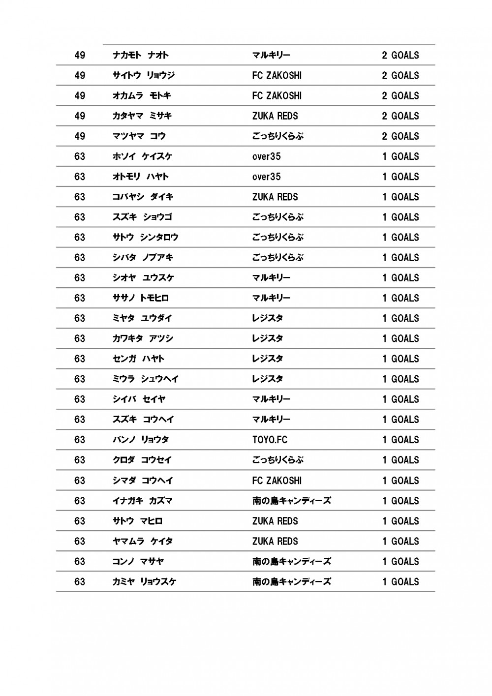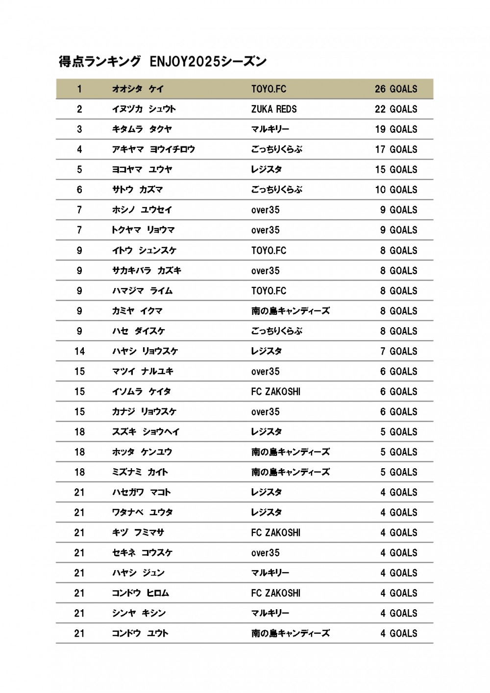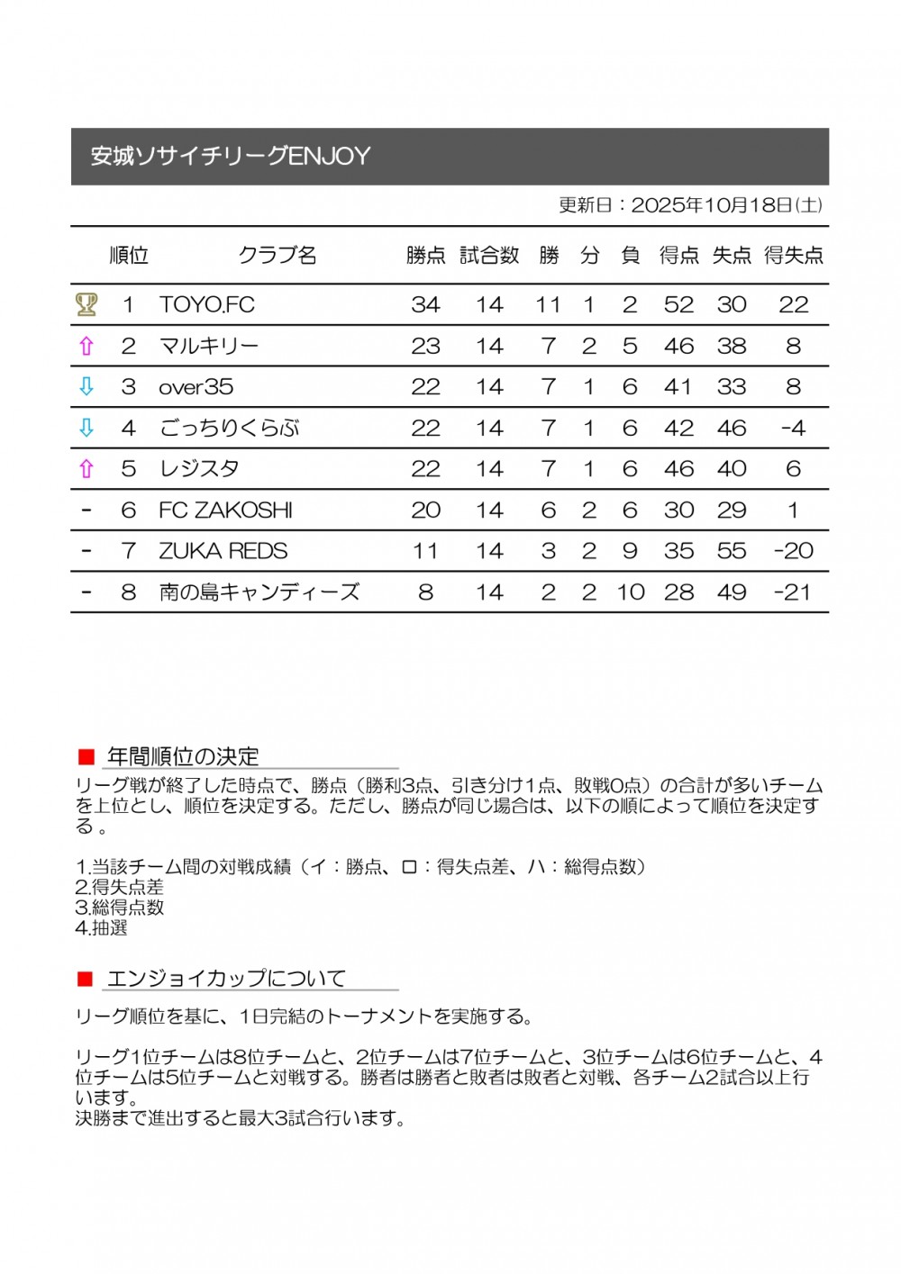 安城ソサイチリーグENJOY 第7節(最終節)結果と順位表