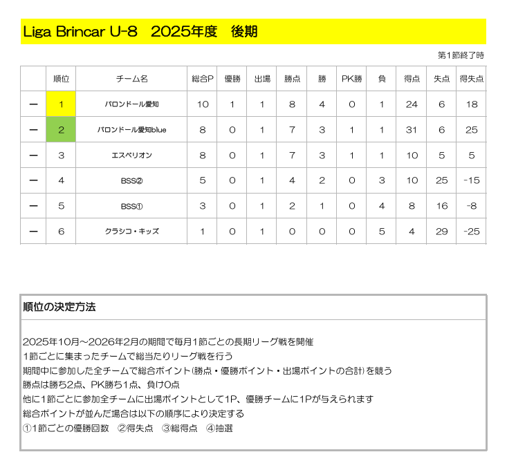 Liga Brincar U-8 2025年度 後期 第1節