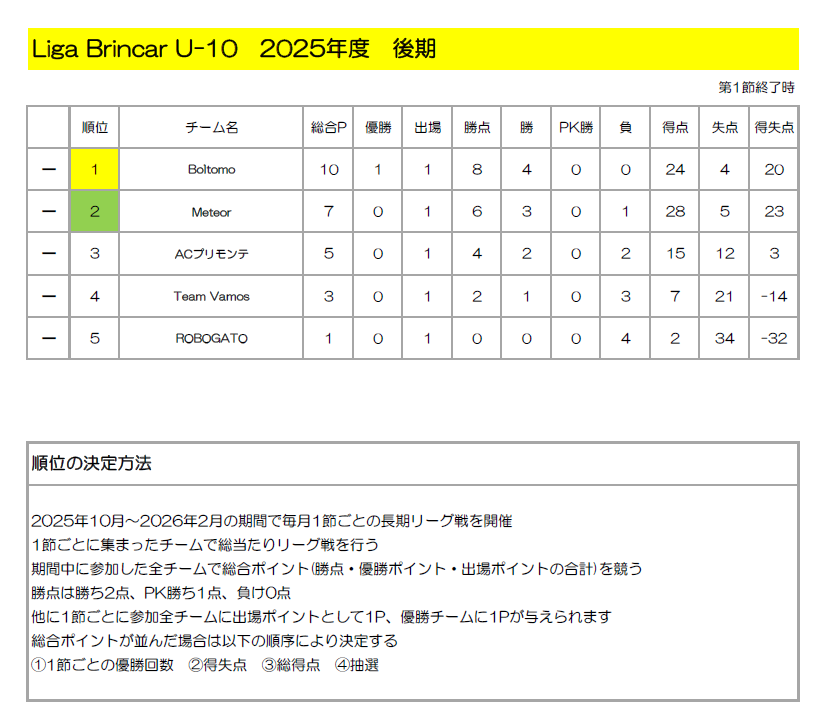Liga Brincar U-10 2025年度 後期 第1節